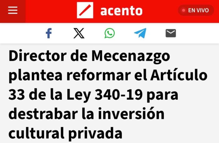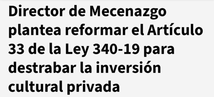 Director de Mecenazgo Plantea Reformar el Artículo 33 de la Ley 340-19