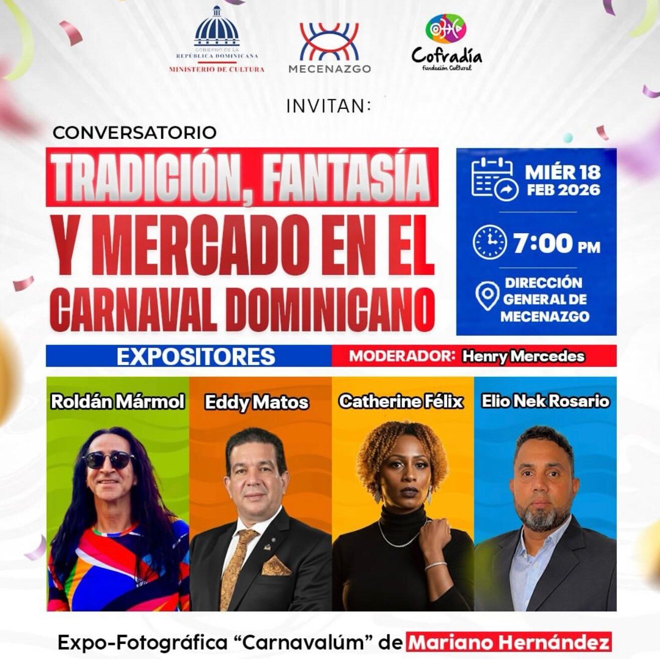 Con la moderación de Henry Mercedes Vales y la participación de Roldán Mármol, Eddy Matos y Catherine Félix, dialogamos sobre tradición, innovación, políticas culturales y el impacto del carnaval en la economía creativa.