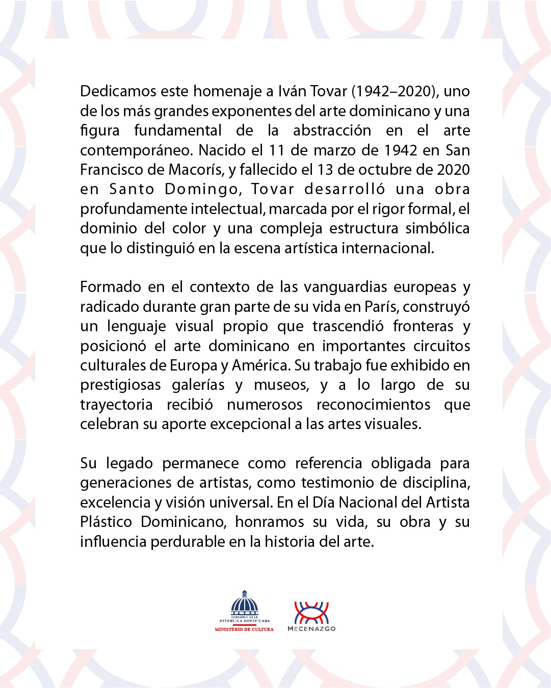 #DíaDelArtistaPlástico #IvánTovar #ArteDominicano #CulturaDominicana #ArtesVisuales #IdentidadCultural